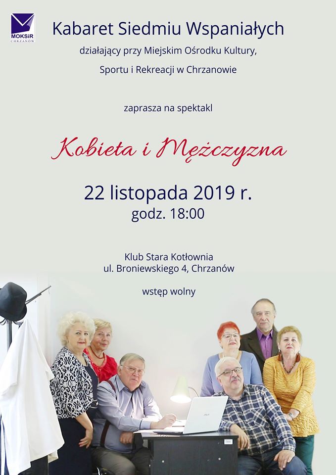 „Kobieta i Mężczyzna” to tytuł najnowszego programu Kabaret Siedmiu Wspaniałych działającego przy MOKSiR Chrzanów, w skład którego wchodzi również mieszkanka naszej gminy – Pani Ewa Terlecka. Grupa pojawi się w Starej Kotłowni przy MOKSiR w Chrzanowie 22 listopada br. o godzinie 18.00. Wstęp wolny!